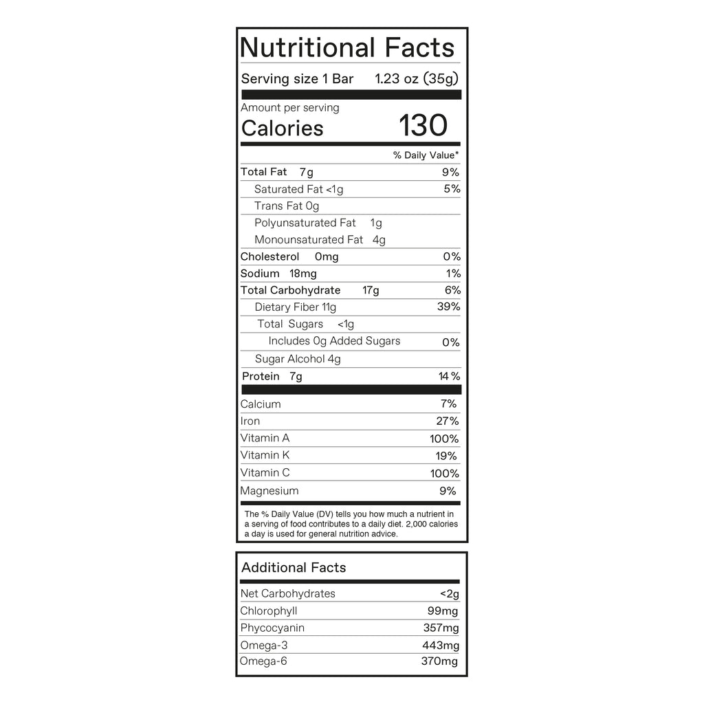 The Nonbar is the first nutrition bar with algae as its primary ingredient. Prototype four contains 31% algae and aquatic plants (spirulina, chlorella, and lemna ) with 7 grams of clean and complete protein. The Nonbar provides the essential micro and macronutrients of a light meal that is high in fiber and low-sugar. Packed with antioxidants, vitamin A, calcium and a highly absorbable source of iron, it’s the perfect on-the-go or in-between meal.